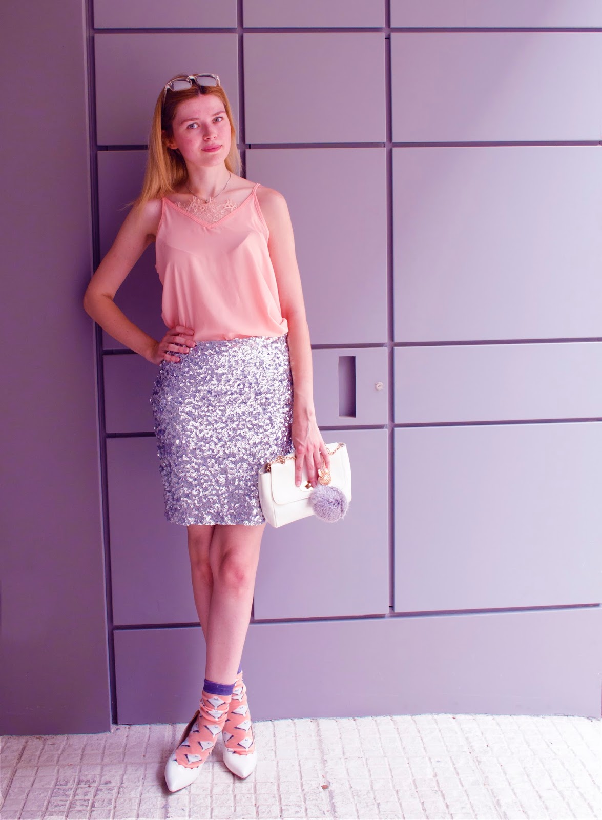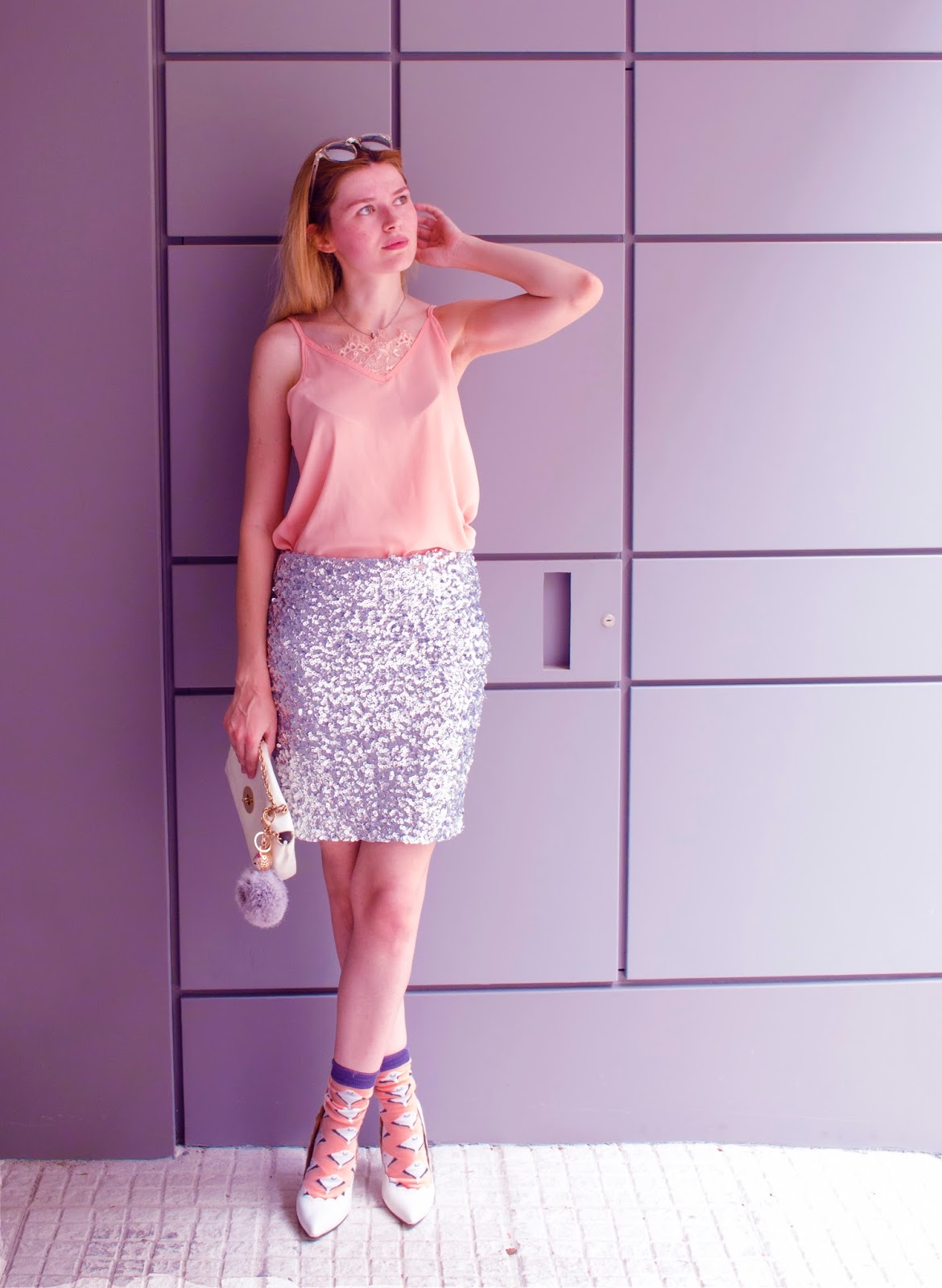 This is such a pretty and feminine look! I really like the pink and the sequins together