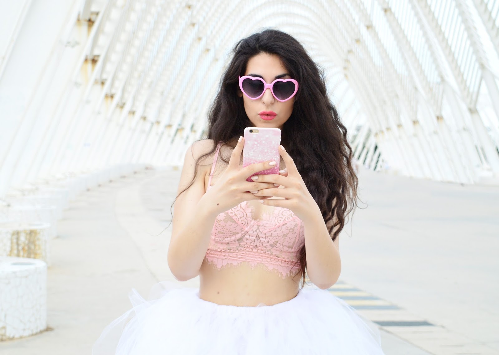 Hello Fashionistas! I have a theory… I believe that we all came to this earth to win, to thrive and to Sparkle! And that can only happen when we have faith in ourselves… That’s why despite all the weird looks I got on the street I wore my huge DIY tulle skirt! I love tulle skirts in general and so I decided to make one of my own! I know there are a thousand tutorials out there, but if you’d like to see one from me let me know down below in the comments… The rest of my outfit is also pretty girly! I decided to give a go on the bralette crop-tops that are everywhere right now, needless to say I loved it! I found mine on Choies! Choies is a site with a huge variety of trendy clothes and accessories in unbelievable prices and you should totally check it out! As for my new iPhone case it’s by CaseApp, a site where you can make your own custom case or choose from the other great designs… I love my sparkling one and I have it as a little daily sparkle reminder! So, would you try my look? I have to say that I had a handful of little girls calling me Barbie during this shoot, which made me absolutely thrilled… Until next time embrace yourselves, have fun, keep doing you and never let anyone dull your Sparkle!