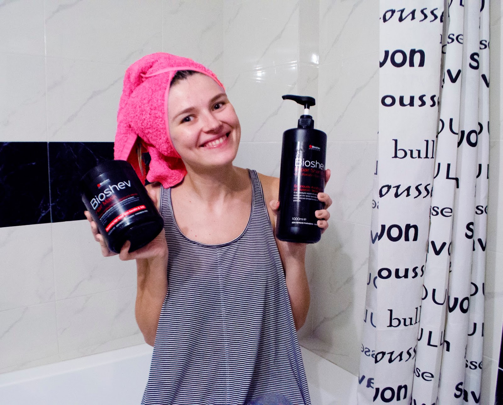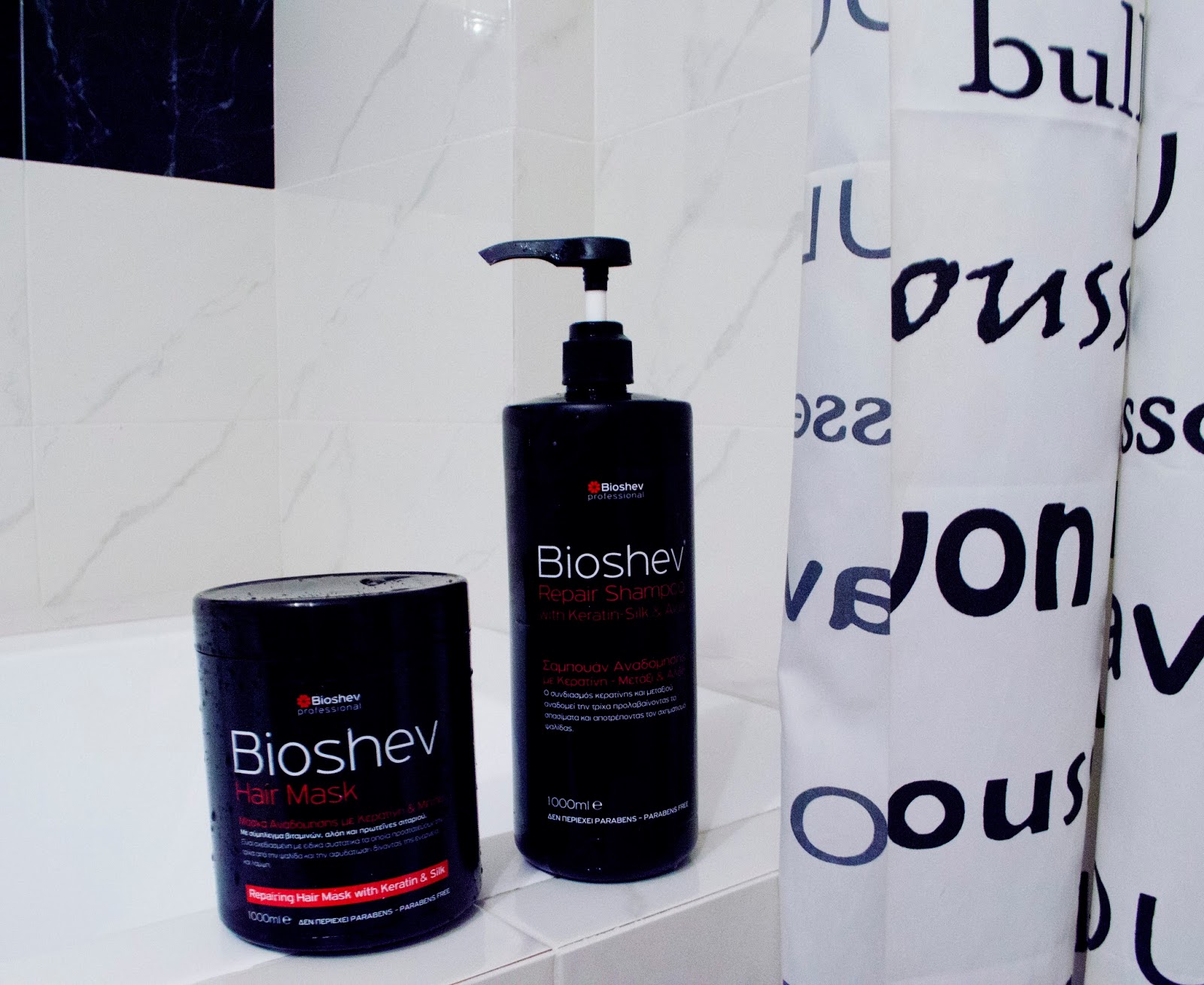 EN : Hello Litlle Bites! Here I am, with a completely different post :) Today I want to make a review on two products (shampoo and hair mask) from a new brand named BIOSHEV professional. Since I have bleached hair, it was a perfect opportunity for my hair to become silk and shine. I washed my hair two times with BIOSHEV Repair Shampoo, which contains keratin - silk and aloe. I like its smell a lot and the fact that I kept my hair from getting tangled thanks to this shampoo! I have to admit, though, that I had a problem using the bottle, but in the end I managed to do it (yeah!). The most important for me is that it is paraben free and has keratin :) Then I applied the repairing BIOSHEV hair mask with keratin, silk, aloe, vitamins A, E and F. I think I left it for about 5 minutes and the beauty home treatment was over! Ι will use these two products again and again for better results!