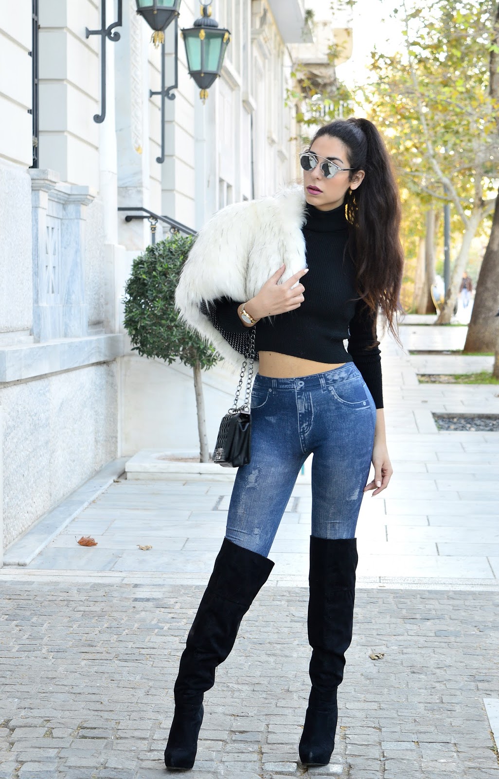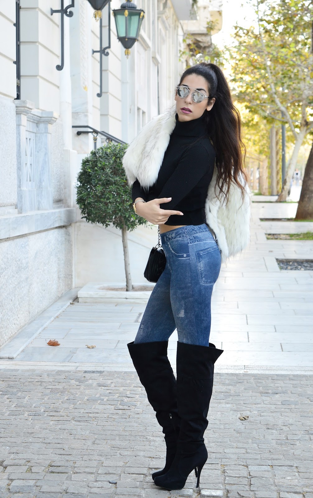 Hello Fashionistas! Δεν είμαι μεγάλη φαν του Χειμώνα, αλλά όσον αφορά στη χειμωνιάτικη γκαρνταρόμπα... Είναι μια εντελώς διαφορετική ιστορία! Πιστεύω πως είναι η εποχή που μας επιτρέπει να γίνουμε λίγο πιο άπλειστες σε σχέση με τα ρούχα! Υπάρχει τόσο μεγάλη ποικιλία σε αξεσουάρ και ενδύματα... Συνθετικές γούνες, παλτό, γιλέκα, καπέλα, γάντια, μπότες πάνω απο το γόνατο κλπ. Νομίζω είναι καιρός να γίνουμε λίγο πιο... Extravagant! Το look μου είναι πολύ απλό με κολαν και crop-top ζιβάγκο, οι μπότες και το γουνάκι μου όμως το έκαναν εντελώς διαφορετικό! Πολύ πιο glamorous and poised... Λατρεύω ένα fierce σύνολο όσο και μια fierce σταση ζωής! Μπορεί να ακούγομαι λίγο υπερβολική, αλλά θεωρώ πως πρέπει να διεκδικώ αυτά που θέλω και αξίζω... Μην ξεχνάτε, δεν είναι κακό να είστε λίγο... Greedy!