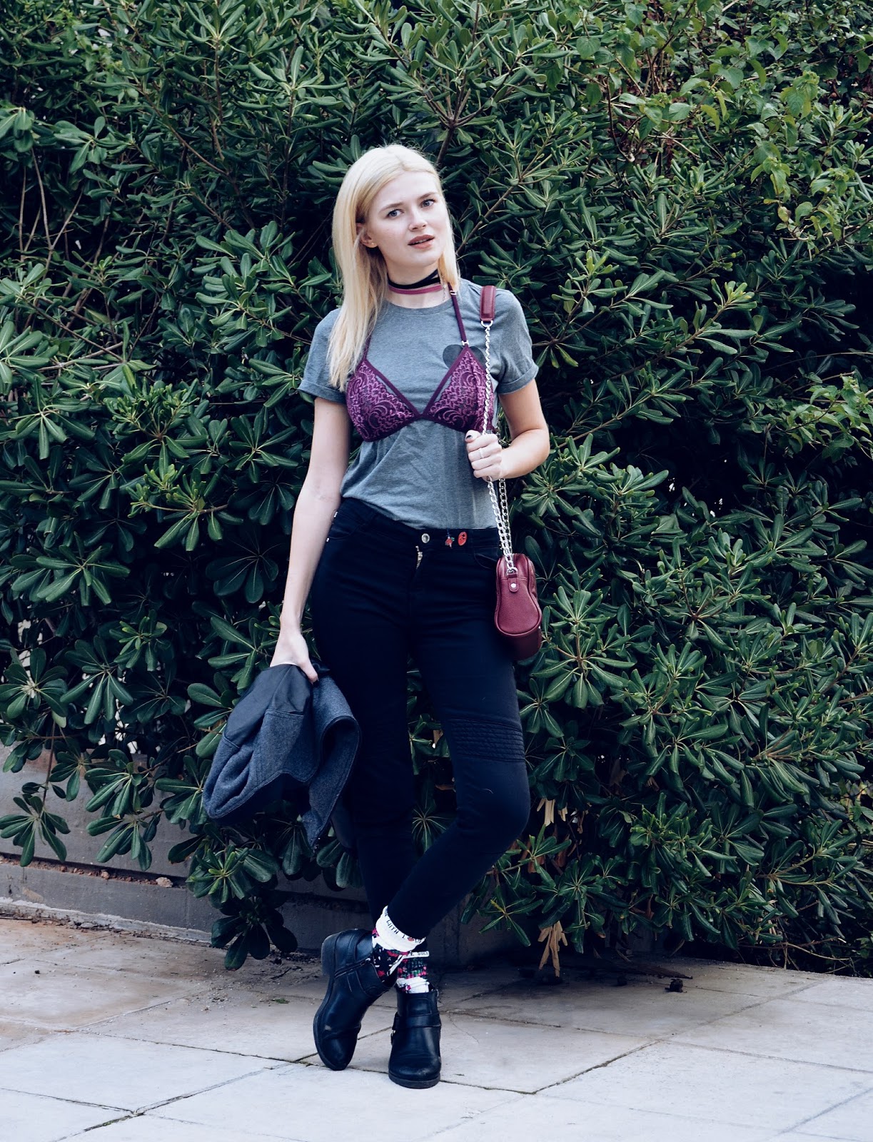 This brand is owned by Maya and it is based in USA. She believes that every girl should have a comfortable and sexy item for days when a bra is not necessary. That's why she creates beautiful bralettes to provide freedom in her customers everyday looks, like parties, beach, fashion events etc. You can find more ideas how to wear bralletes on her Pinterest account. Personally I love Maya's bralletes and I am happy that she sent me this lovely burgundy one. Also on DENTELLE BY MAYA, you can find, harness bras, lace boot cuffs, garters, headbands, wrist cuff bracelets and chockers. A really nice shop :)