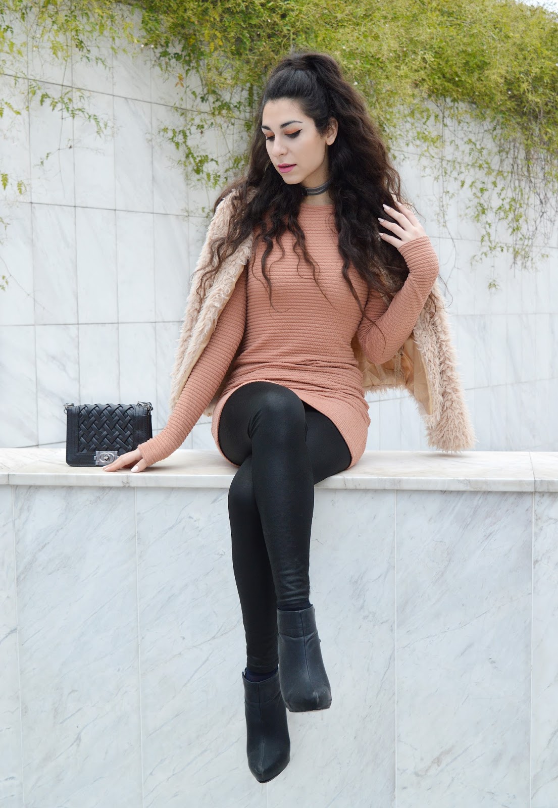 Hello Fashionistas! It’s still really cold here in Athens, so I keep finding ways to stay warm while also being glamed-up! This time I decided to wear leggings underneath my bodycon dress and I really loved the result… Of course I added one of my fav, fax-fur jackets in order not to freeze and to complete the outfit! However it did look a bit ‘’empty’’ without some jewelry, so I wore this amazingly glamorous, velvet choker by Perlica Po Perlica! Ivona, who’s the owner of the brand, makes wonderful, luxurious pieces of jewelry that will style-up any get-up! I’m really into chokers and when I saw this one, fireworks lit up the sky…!! I’m really in love with her designs and you should really check out her work… For this look I choose neutral, pink shades paired with black to create a sweet but edgy vibe and I really hope you guys like it… Looking forward to reading all of you thoughts down below in the comments… Until next time, stay warm, cozy and Glam!