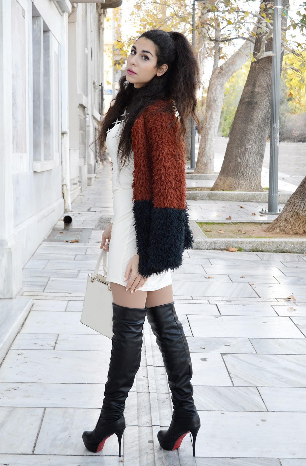 My first post for 2017 is finally here and I’m super happy about it! However the weather doesn’t seem to agree with my happiness, since it’s really cold… A bad thing about cold is that we really can’t seem to figure out what to wear without looking like a big ball of fabric! And it’s true… It’s hard to be delicate and sexy while trying not to freeze! There is an answer to that though… And it’s called layering! Last season we watched the return a 90s fav, the slip dress that is! But how can you wear one during winter? Well, when I saw this amazing Plunging Neck Hollow Out Bodycon Dress on Trendsgal it hit me! I decided to wear it above a turtleneck sweater… And it was quite warm! So grab your favorite summer dress and just wear it above a slim sweater or a turtleneck… As you know, I also love my thigh-high boots (I’m basically obsessed at this point!!) and one of the main reasons is that apart from being really stylish they also keep me super warm… On top of that throw an amazing faux fur jacket and you’re good to go! The Best Of Both worlds… I hope you liked my look and until I see you next time… Stay warm, stylish and show 2017 who’s the boss!