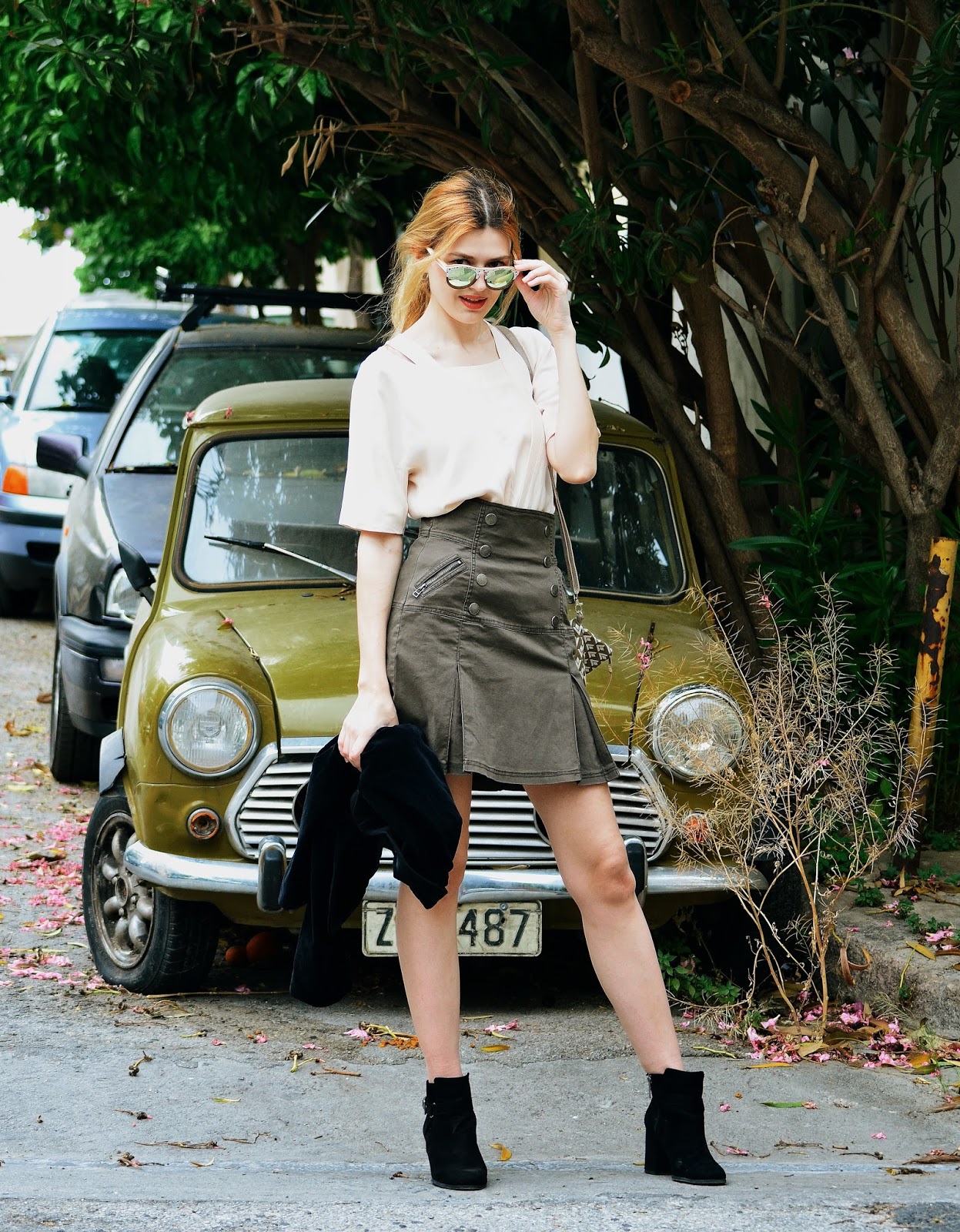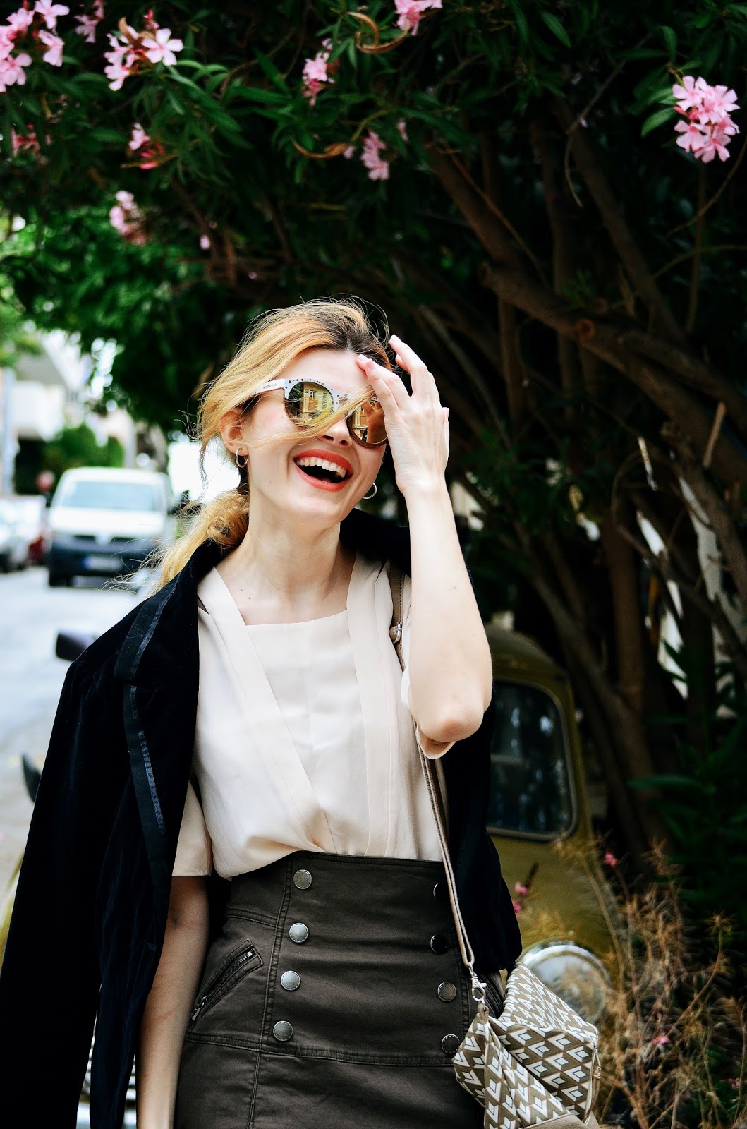 I am so excited to announce you my collaboration with my favourite brand BAZZ...R. I have mentioned in my previous posts, that it has kilo shops with a variety of beautiful clothes for every taste, body shape and age. It is the biggest kilo brand in the Greece! There are 9 spots in total, where you can find these clothes. Each of them is over 300 sq.m and not only sells women clothing, but also clothing for men and kids ;) What I like most about it is that there are very low prices and everyday you can find over 1500 new items. So, the past Saturday I decided to visit BAZZ...R shop in Kalithea (region of Attiki) for the fourth time, to pick some stylish pieces. I was really happy about the fact that I found so many great items and that the staff was super polite. This time this stylish skirt and cute blouse that I am wearing are from there. In my next posts, you will see what else I chose from there, so don't miss any of them :D