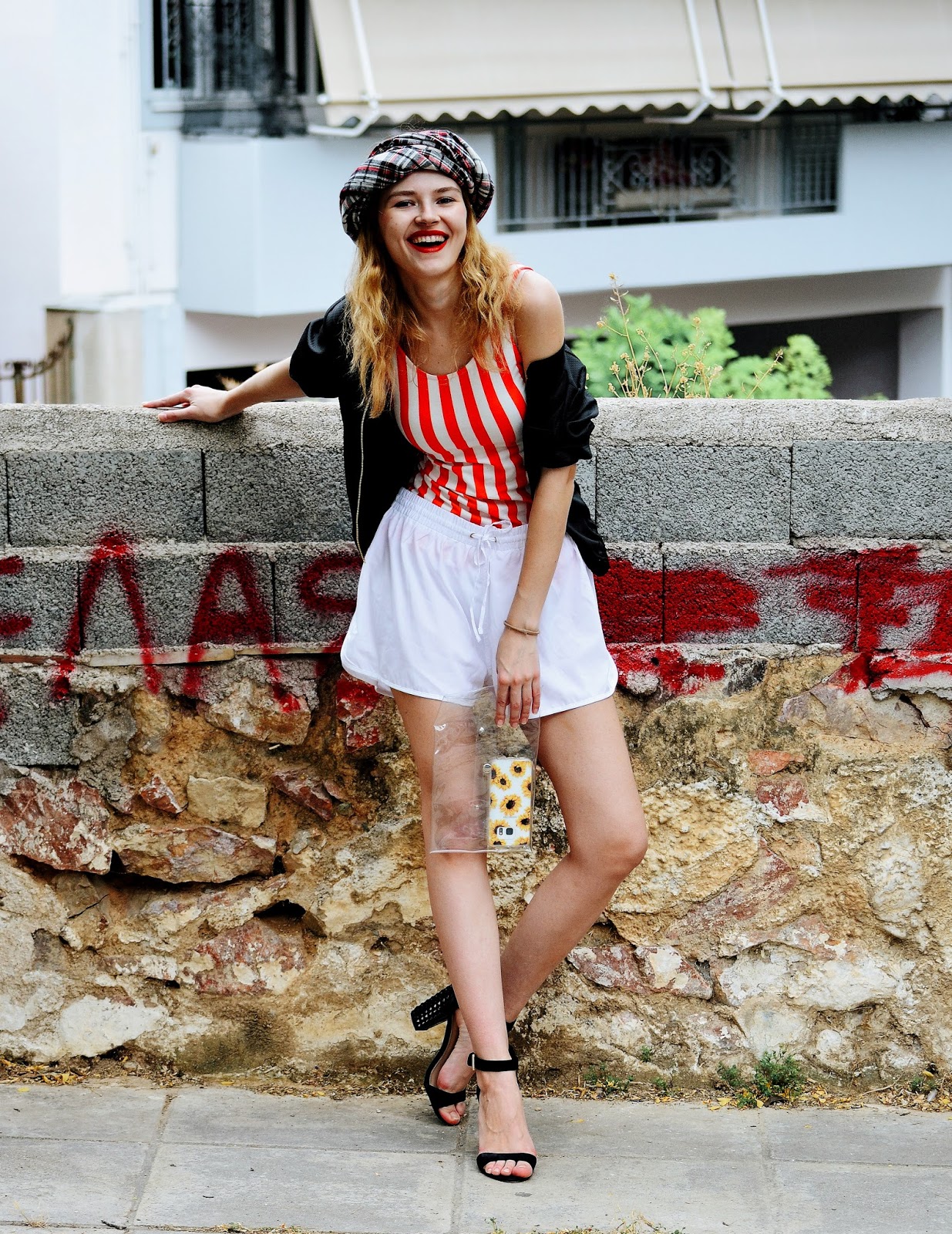 I am so excited to announce you my collaboration with my favourite brand BAZZ...R. I have mentioned in my previous posts, that it has kilo shops with a variety of beautiful clothes for every taste, body shape and age. It is the biggest kilo brand in the Greece! There are 9 spots in total, where you can find these clothes. Each of them is over 300 sq.m and not only sells women clothing, but also clothing for men and kids ;) What I like most about it is that there are very low prices and everyday you can find over 1500 new items. So, the past Saturday I decided to visit BAZZ...R shop in Kalithea (region of Attiki) for the fourth time, to pick some stylish pieces. I was really happy about the fact that I found so many great items and that the staff was super polite. This time this nice striped dress, that I wore like a top and cool shorts are from there. In my next posts, you will see what else I chose from there, so don't miss any of them :D