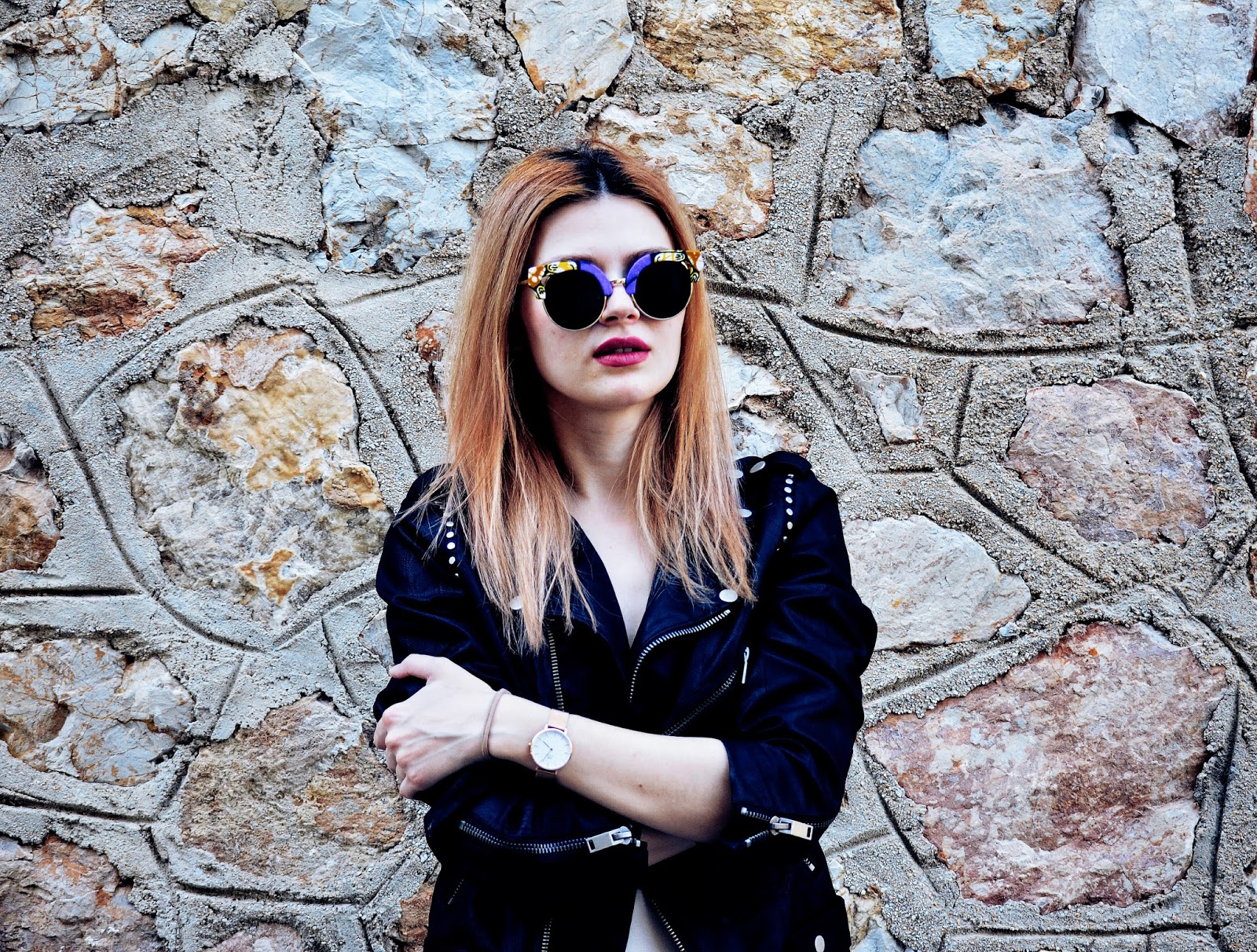 "Meenmarket" can be described as a handmade standout in the crowd of funk fashion ;) It is a brand based in London, which sells African print earrings, sunglasses, skirts, dresses and jackets. I chose to wear this funky pair of sunglasses (B in the photo) and I like that you can match it with many other colorful and monochrome outfits, without making it look "too match".