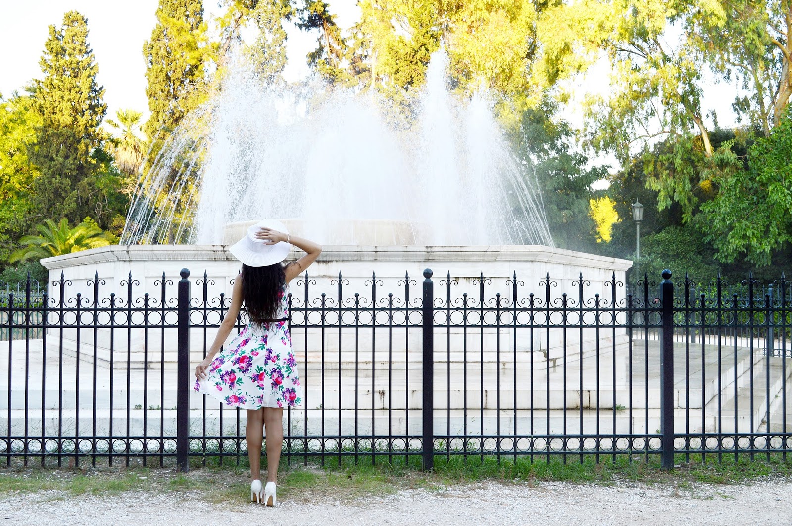Το σημερινό μου look είναι πολύ vintage, θηλυκό και chic… Όλα όσα αγαπώ δηλαδή! Όπως ανέφερα και στο προηγούμενο μου post, ένα φόρεμα είναι ότι καλύτερο μπορεί να φορέσει μια γυναίκα… Ειδικά τα sundresses τα λατρεύω! Με κάνουν και νοιώθω τόσο αέρινη και καλοκαιρινή… Αυτή τη φορά επέλεξα αυτό το floral, φόρεμα από το FashionMia! Ένα website με τεράστια ποικιλία σε καταπληκτικά, προσιτά κομμάτια που σίγουρα θα τραβήξουν την προσοχή σας! Συνδύασα το δικό μου με καπέλο, cat-eye γυαλιά ηλίου, πέρλες και λευκές γόβες για ένα retro, ρομαντικό vibe, καθώς τριγύρισα στον Εθνικό Κήπο! Πραγματικά αισθάνθηκα λες και ξεπήδησα από μια άλλη εποχή (που για να είμαι ειλικρινής μου συμβαίνει συχνά). Συνήθως είμαι αρκετά τολμηρή στις επιλογές μου, όμως αυτή η vintage αθωότητα με κάνει να νοιώθω υπέροχα! Ανυπομονώ να διαβάσω τα σχόλια σας για αυτό το σύνολο… Επίσης, αν σας δινόταν η ευκαιρία, σε ποια εποχή θα θέλατε να κάνετε μια βόλτα;
