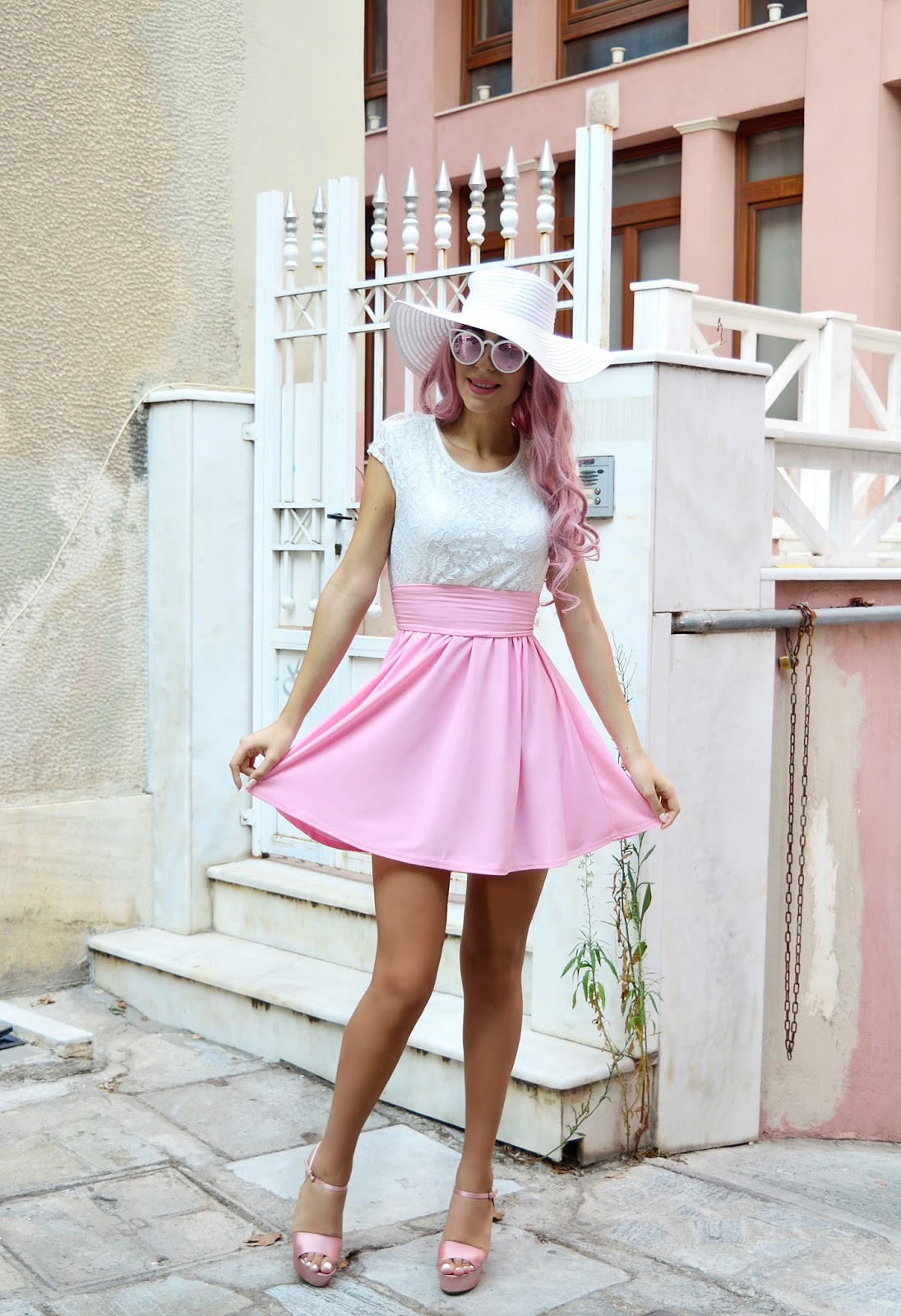 It might be September, but weather wise, it totally feels like summer here in Athens! Thus, I decided to go out and take a stroll, in the most summery of all summer get-ups… A super-cute sundress and pink hair that is! My dress is amazingly girly and comes with a belt that really accentuates the waistline, which is something I love! I found it on Chic Me, a website that offers a great variety of high-quality clothes, shoes and accessories in unbeatable prices! But don’t take my word for it, take a look and you’ll see what I mean… As for my luscious pink curls, I have DressLily to thank for! In my last post I said that changing up my hair is always fun, but I like to stay on the safe side and use a wig instead of damaging my locks with peroxide or whatever! So, next time you want a fun change you should really consider that option… Many celebrities do too (including Kylie Jenner and Blac Chyna)! Once again, I’m also wearing my Adore Tri-Light Green Lenses by Avramis Optics! For this look I kept accessorizing to a minimum, with a big white hat for an extra flair and -of course- extra protection! I’m so not ready to wave summer goodbye… How do you feel? Are you ready for the new season? Let me know down below in the comments, along with your thoughts about this look! Until next time, stay summery, fun and…. Pink!