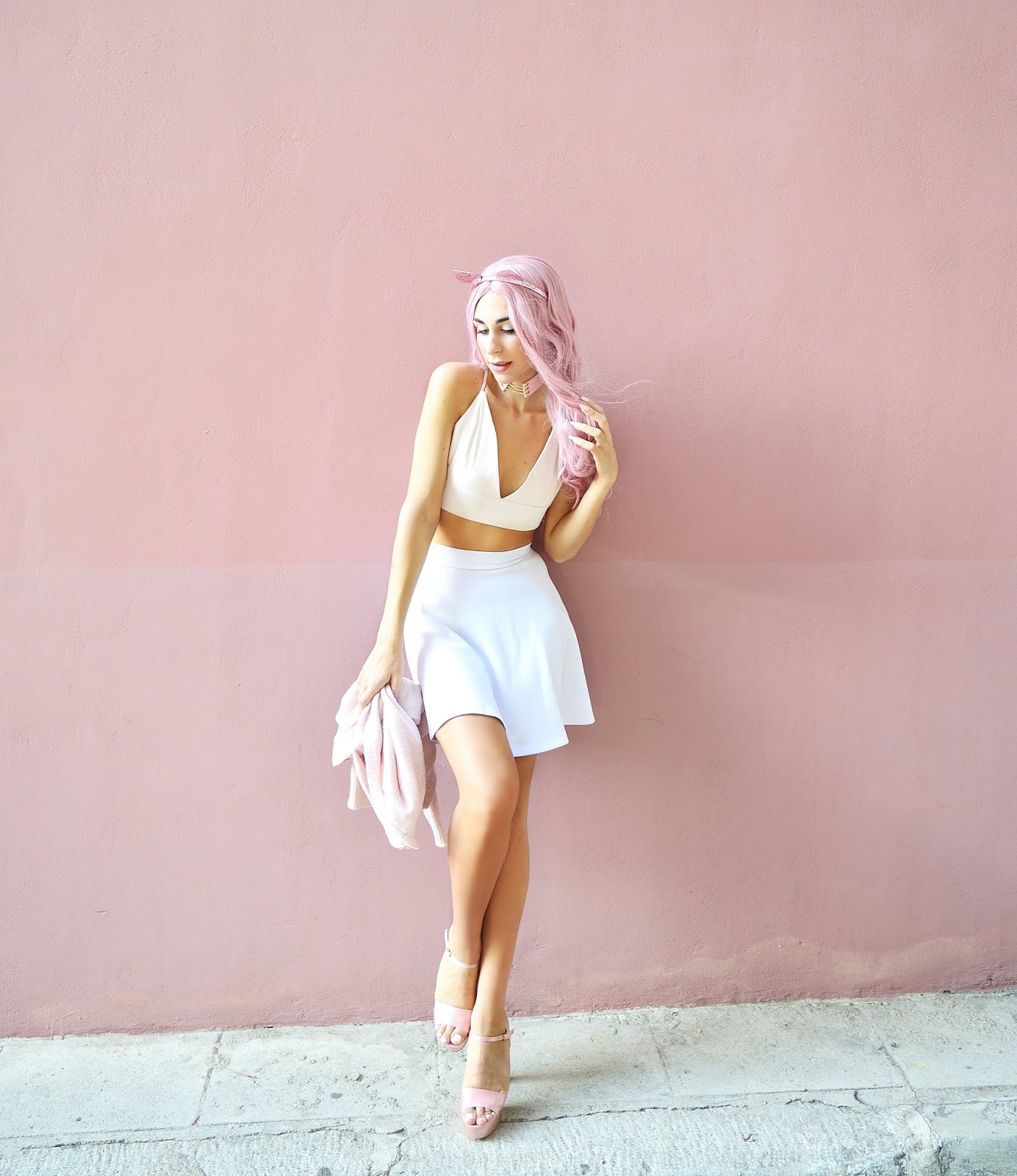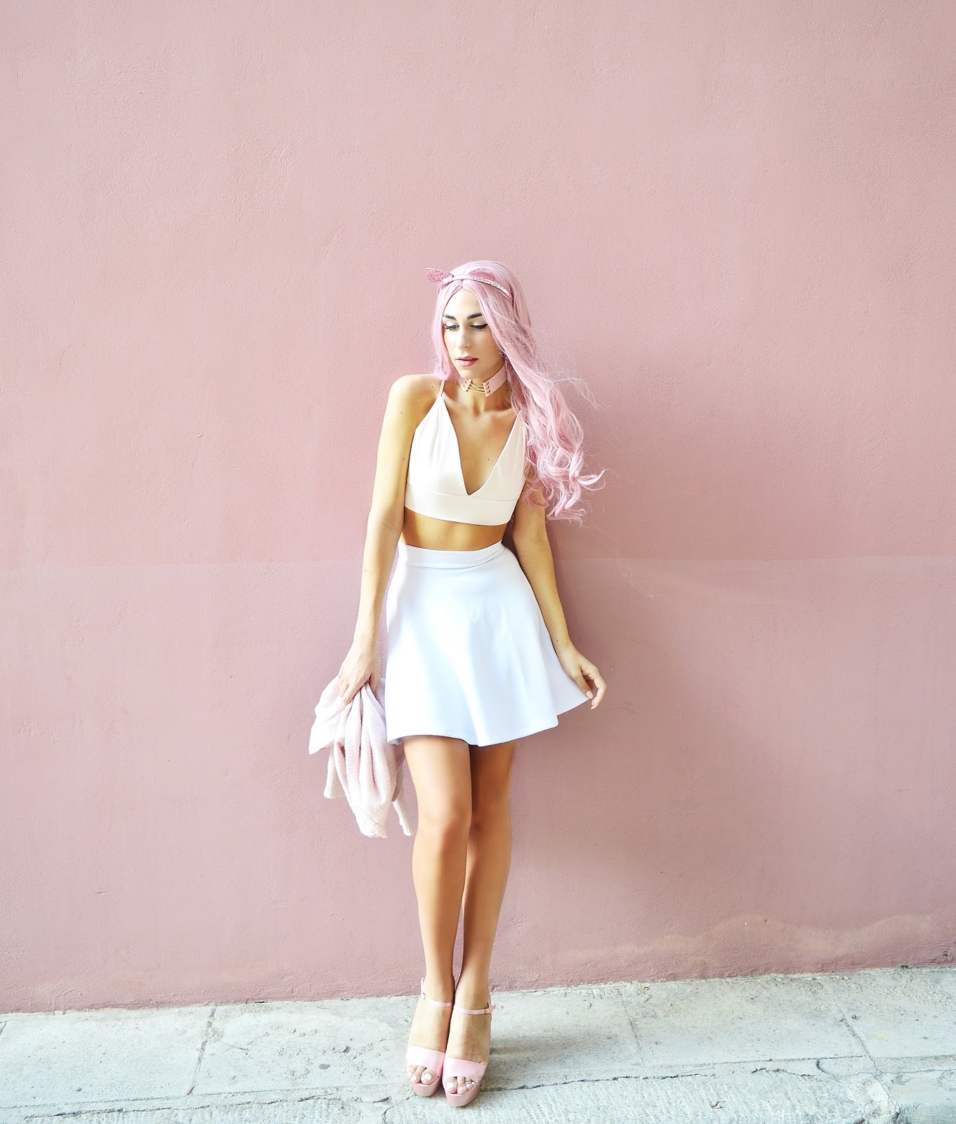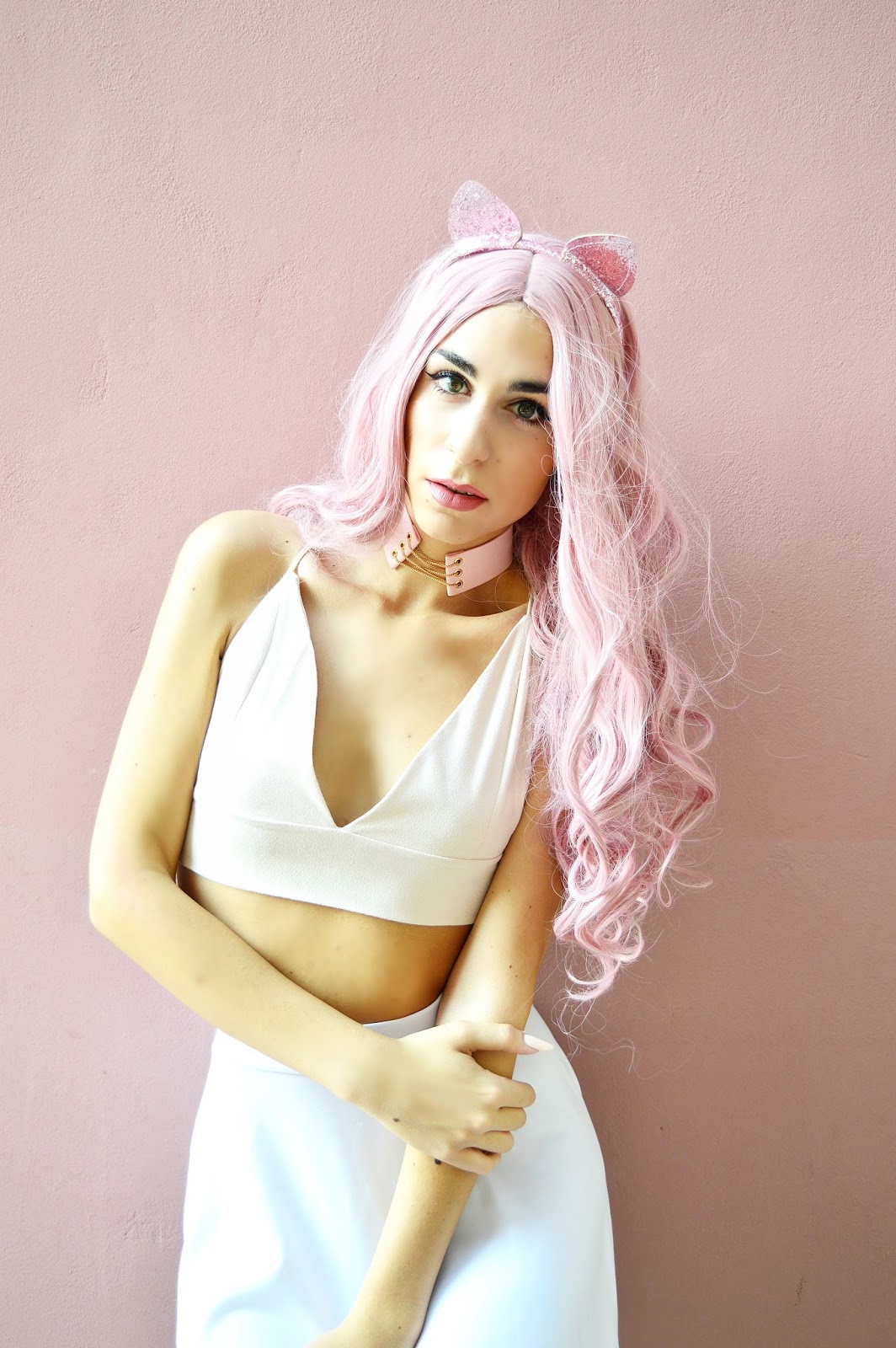 As you probably know pink is my absolute, favorite color and I always wanted to try it on my hair… So, I did! On my last post I told you guys how I love changing up my hair color lately, but not permanently… And I’m thinking that wigs are the best way to go… Lace front wigs, cosplay wigs, the choices are endless and the results are so amazingly transforming! My pink wig is by DressLily, an amazing website that offers a huge variety of clothes, shoes and accessories galore in prices that will leave you breathless… I was so happy with my new amazing color and I got SO.MANY.COMPLIMENTS! Of course, since I did change my hair to this wonderful, fairytale color… I had to do something with my eyes too! So, I wore my new Adore, Trendy Tri-light green, colored contact lenses by Avramis Optics to complete the mesmerizing effect… Avramis Optics is a Greek store with natural and online presence that is basically a paradise for eyewear… Luxury sunglasses, eyeglasses and contact lenses galore that will satisfy every taste and style! I was so thrilled to try my new lenses and if you want a fun change too I suggest give it a go as well! As for this outfit, I went for my favorite combination of crop-top and skater skirt while I threw in some cat ears for some extra sparkle! My white, skater skirt is also by DressLily and I’m loving it… So flowy, girly and cute! It pretty much goes with anything! Life is too short not to dress however we like, no matter how crazy or extra our get-up is… We have to own it! Normal is really the new boring and we shouldn’t let anyone treat us like yellow stardust… We’re pink stardust all the way!