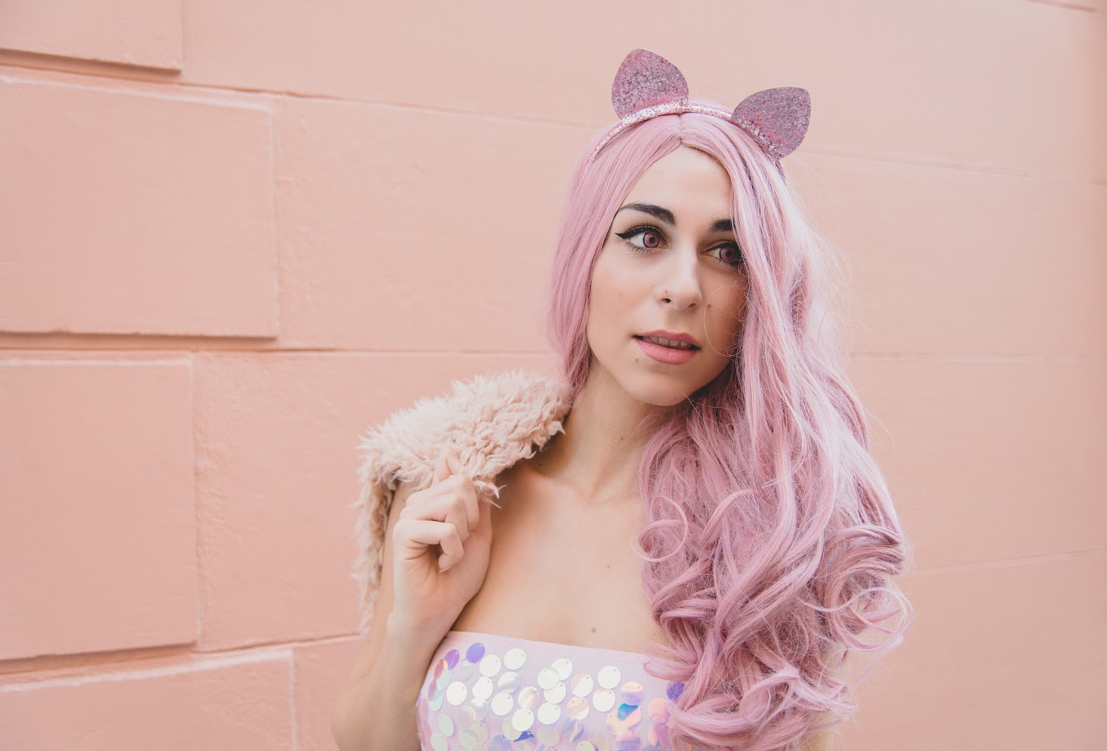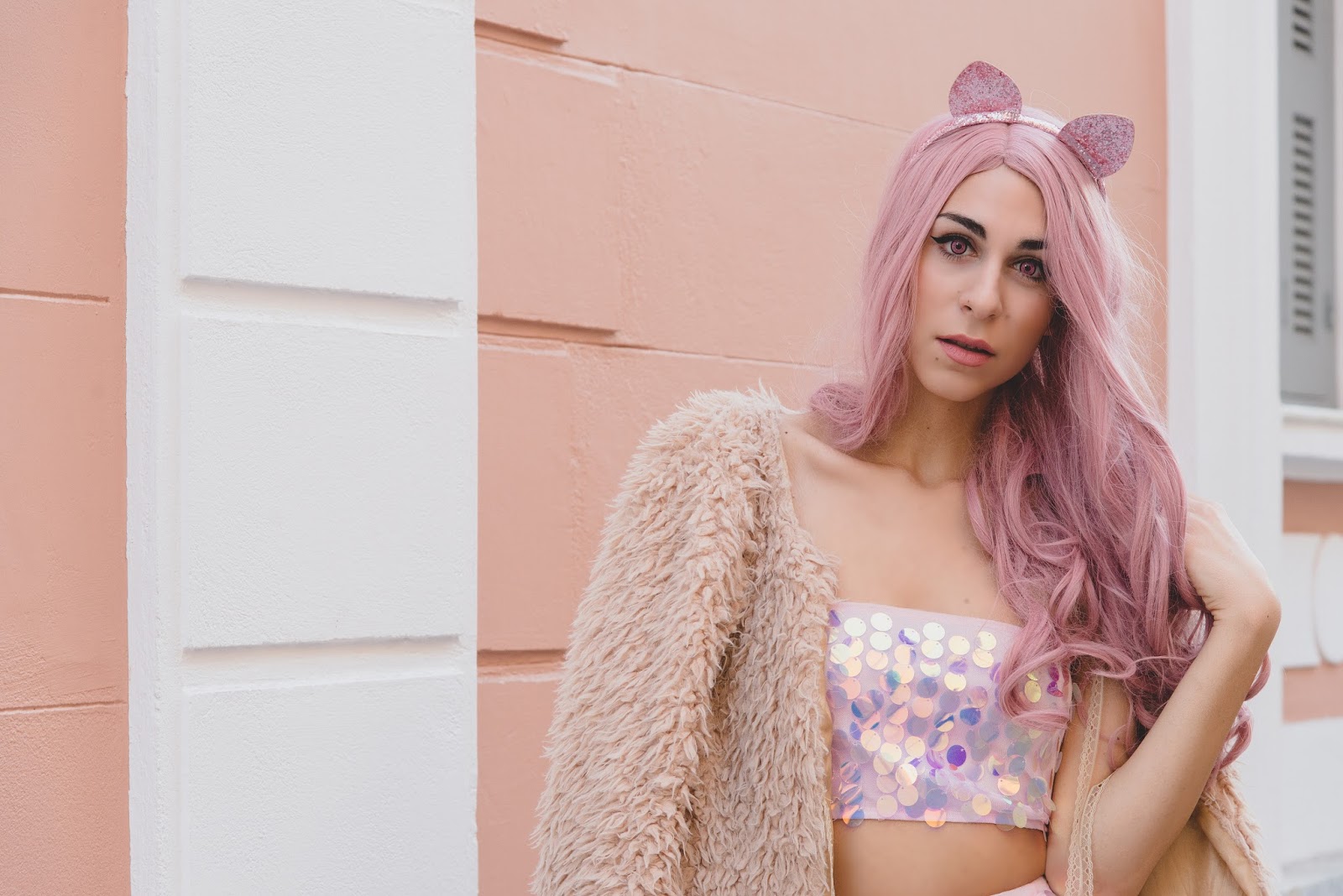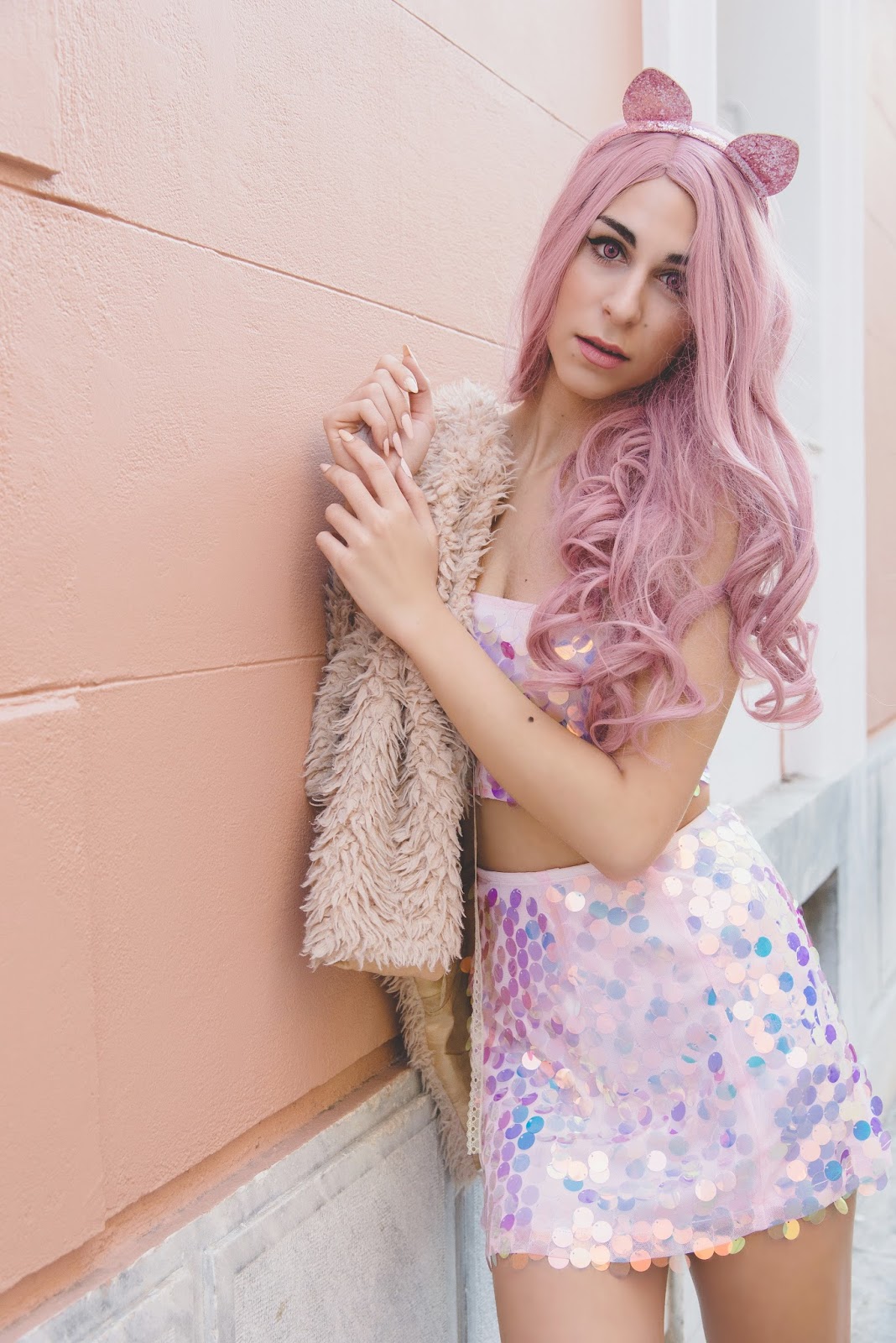 Today’s look may be one of my favorites yet… I mean, so many sparkles and pink… YAS! When I saw this little two-piece number (tube-top & skirt) on Motel Rocks, I was stunned by the unicorn effect! Fall may be a very cozy season, but when you’re about to hit the party scene you don’t need much but sparkle! And I don’t get why we should spend our life wearing boring clothes… It might be intimidating sometimes to just go wild and wear something outrageous, but hey… What if we shine? And I did in my fab outfit! Motelrocks.com is the best place to find all the latest, glamed-up trends that will leave you breathless, so go check it out! Now let’s address the elephant in the room… My new vibrant pink -yes pink- eyes! I tried the Dolly Eyes Pink contact lenses by Uniqso.com and I was amazed! They are circle lenses that totally covered my natural brown color, while enlarging my eyes a bit… Thus giving a Doll, vampire effect, which I loved!! They felt great on my eyes and I could wear them forever!! Did I mention they last a year? So perfect! Plus, the packaging and case are soo cute!! When I was little and every other brown eyed kid at school wished for blue or green eyes, I always used to say that I want pink eyes, so this was everything for me! If you too are looking for a fun, out of the ordinary change -especially with Halloween coming up- head to the website… You’ll thank me later!! Of course this wouldn’t be one of my fav posts, without the amazing shots by Achilleas Vogdanidis of Vogdanidis & Sons Photography- Cinematography! He always gets my vision and helps me create something absolutely dreamy… I’m so thankful to him! You can also create your own dreamy moments, just hit www.vogdanidis.com and live your fairytale! Oh btw, I missed my pink hair, so they had a little comeback moment, hihi… Life is too short not to do your thing, so go out there and be as extra as you wanna be, even if it scares you… Just shine!