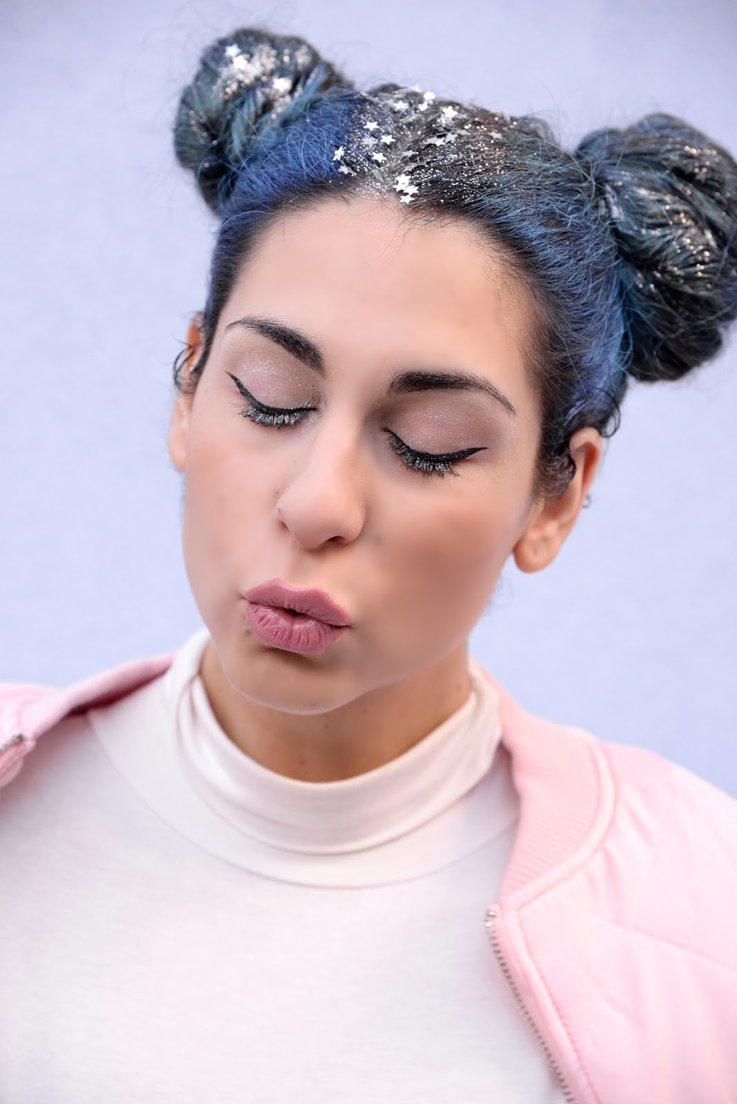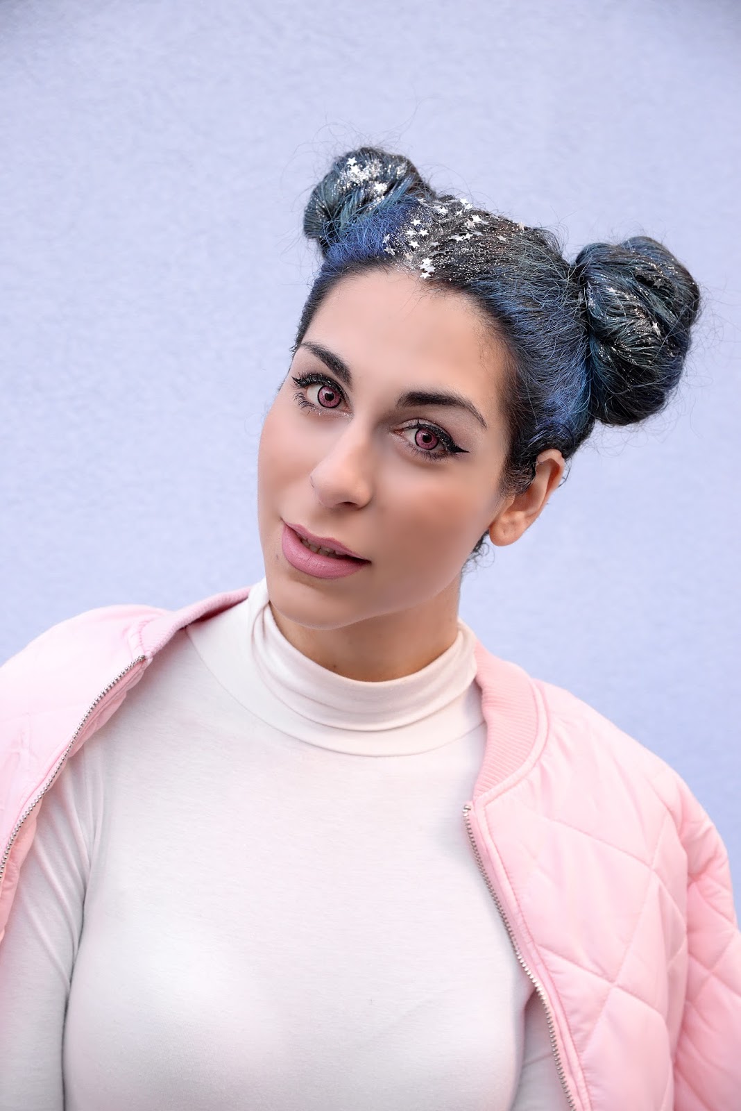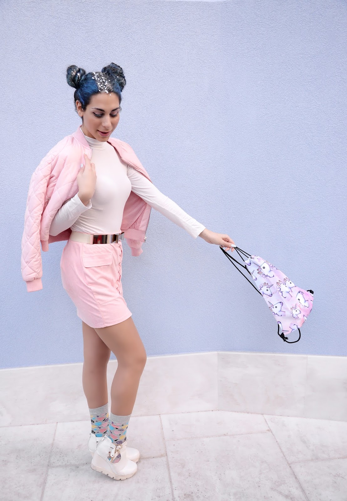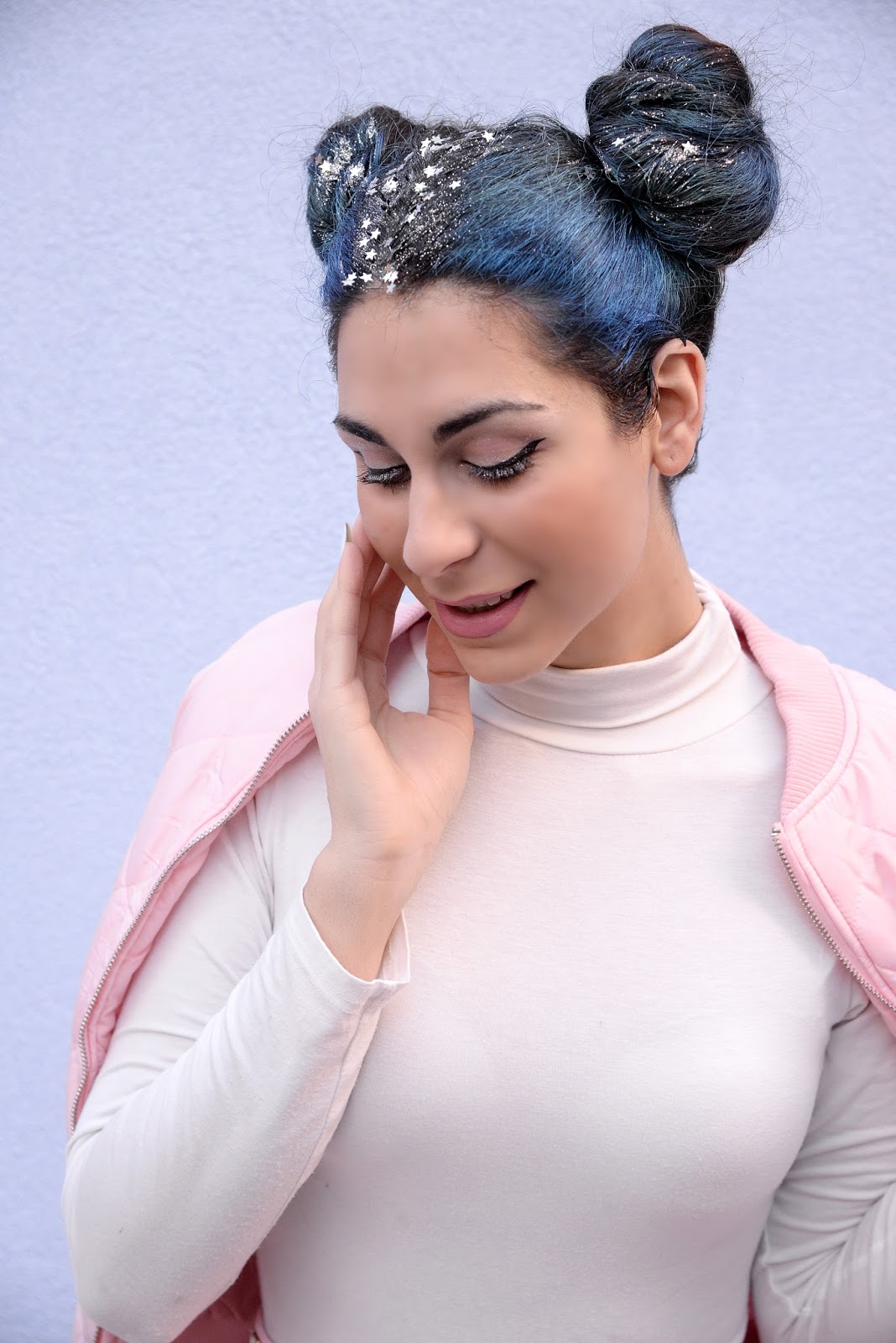 Τα Χριστούγεννα είναι μια ανάσα μακριά και βρίσκομαι σε απόλυτα γιορτινή διάθεση!! Έτσι αποφάσισα να κάνω κάτι διαφορετικό με το look μου σήμερα... Είναι ένα trend που κυκλοφορεί εδώ και κάποιο καιρό και πραγματικά ήθελα να το δοκιμάσω! Glitter roots λοιπόν! Λατρεύω οτιδήποτε λαμπερό και χαρούμενο, οπότε λάτρεψα και τα μαλλιά μου έτσι, ειδικά σε συνδυασμό με τις πούλιες-αστέρια και το double-bun χτένισμα! Όσο για το outfit μου, πρόκειται για ένα βασικό look, με ένα bodysuit και μια bodycon φούστα, το οποίο αναβάθμισα στιλιστικά με το αγαπημένο μου bomber, ένα υπέροχο unicorn backpack (βρείτε περισσότερα cute πράγματα στο ZAFUL) και τις καινούργιες, χαριτωμένες diamond κάλτσες μου από το Happy Socks! Τα Χριστούγεννα είναι η καλύτερη εποχή για όνειρα και λάμψη... Και αυτό ακριβώς ήθελα σε αυτό το look! Οτιδήποτε κι αν λένε οι άλλοι, λατρεύω αυτό το στυλ και νοιώθω πολύ καλά με αυτό! Όπως πάντα οι υπέροχα cute φωτογραφίες αυτού του post είναι δημιουργίες του Αχιλλέα Βογδανίδη του Vogdanidis & Sons Photography- Cinematography! Κατάλαβε το ονειρικό κλίμα που είχα ως στόχο και το αποτέλεσμα βγήκε περισσότερο από φανταστικό... Δημιουργήστε τις δικές σας αναμνήσεις (γάμους, βαπτίσεις, οικογενειακές περιστάσεις, εκδηλώσεις κλπ.) και κάντε κλικ στο www.vogdanidis.com για να τις κρατήσετε ζωντανές για πάντα! Ελπίζω να σας άρεσε αυτό το look όσο και σε εμένα κι ανυπομονώ να διαβάσω τις σκέψεις σας κάτω στα σχόλια! Πείτε μου επίσης, αν θα θέλατε να δείτε tutorial για το look στα μαλλιά, μιας και σκέφτομαι να ανεβάσω ένα στον λογαριασμό μου στο instagram! Ως την επόμενη φορά, ζήστε την Χριστουγεννιάτικη μαγεία στο έπακρο, συνεχίστε να ονειρεύεστε και να στοχεύετε στα ΑΣΤΕΡΙΑ!