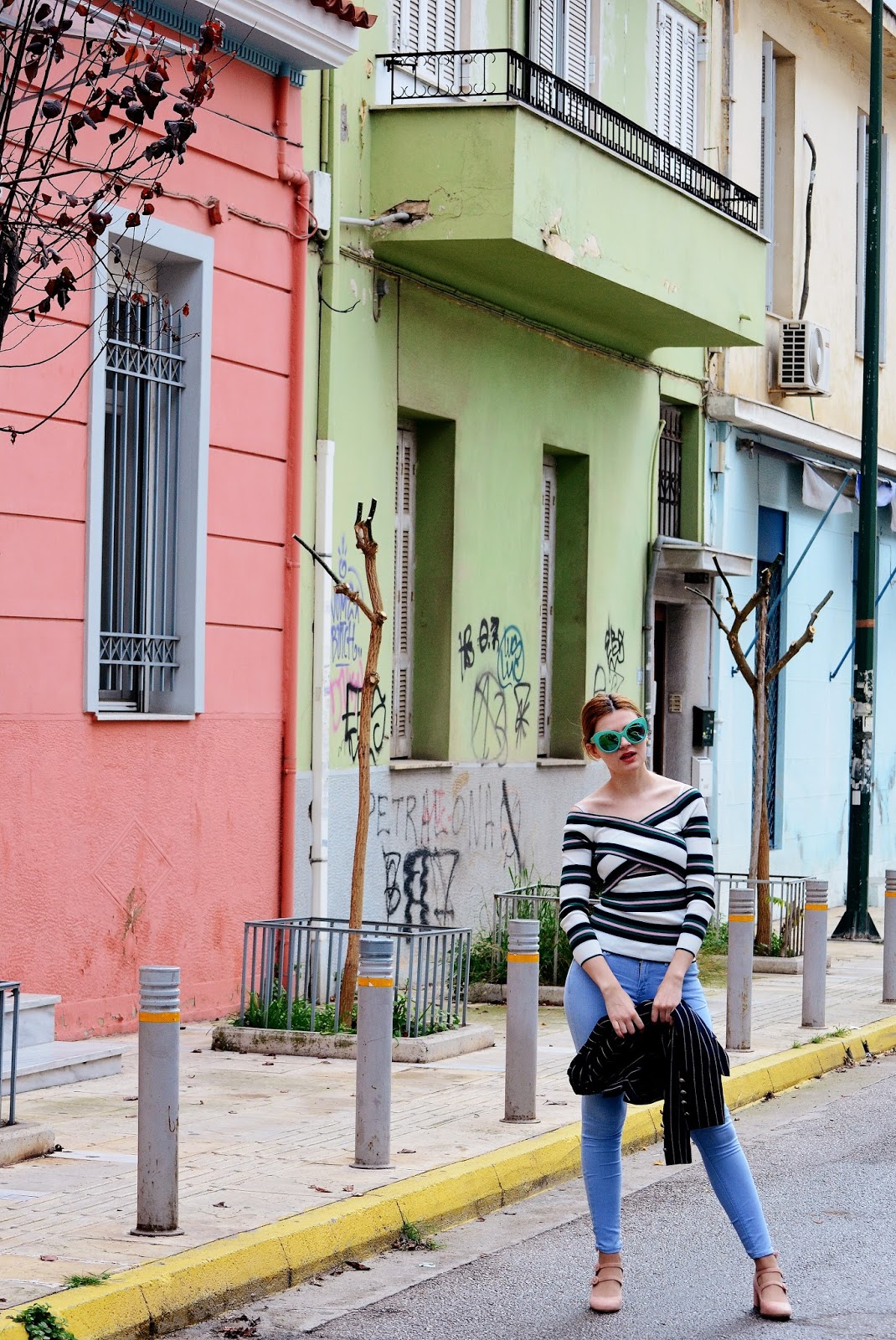 ReplyDeleteLoving the stripe top and that jacket! Super awesome! Very colorful background as well!