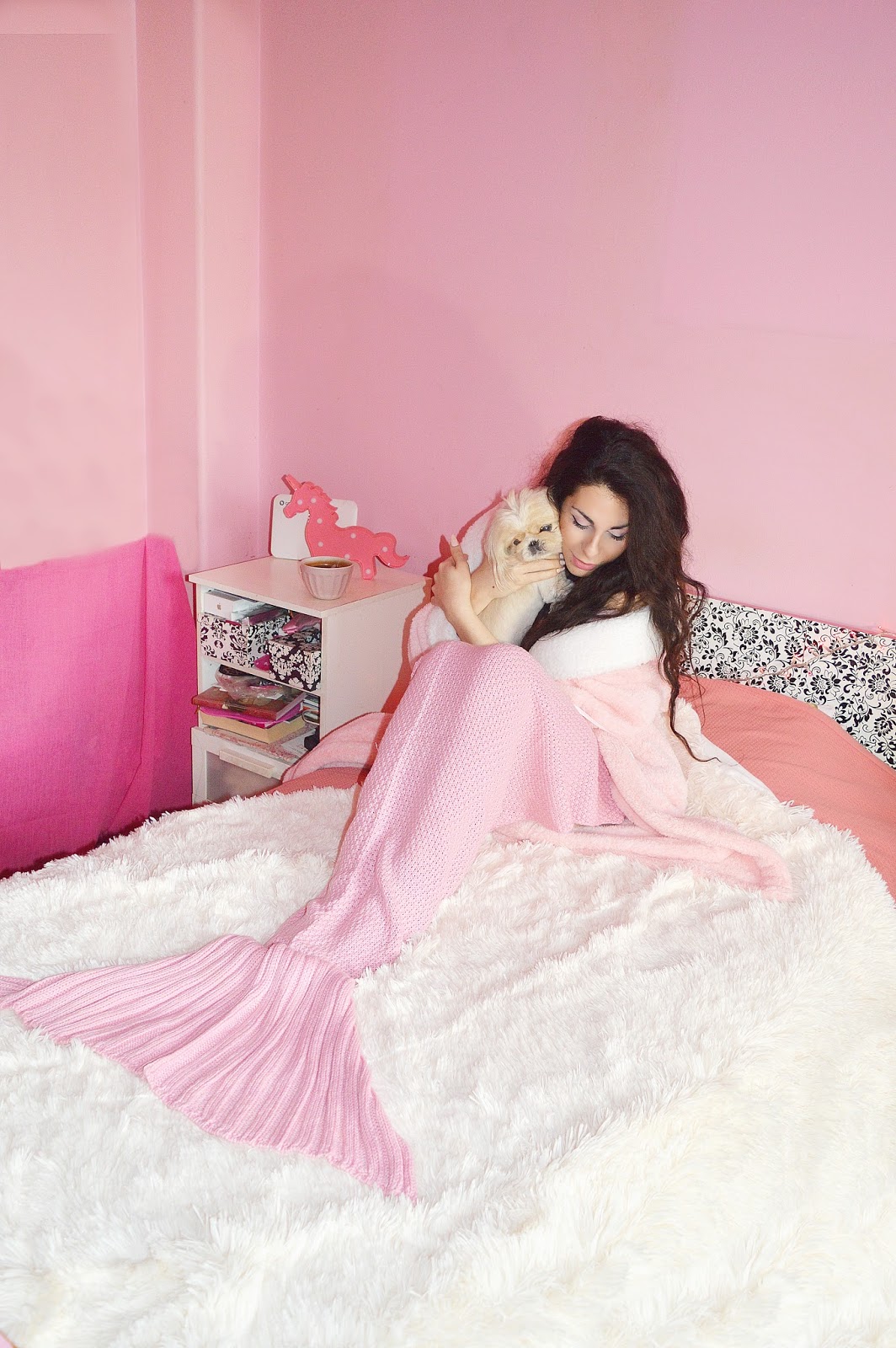This past weekend was rainy to say the least, so it was the perfect time for me to stay home and cozy up in my amazing mermaid blanket by Zaful! It’s the perfect way to keep us mermaids warm when we’re on land in winter! In all seriousness, mermaid blankets have been all the rage lately and I can totally see why… They keep you warm and cozy, while being amazingly stylish and making you feel like you’re living a fairytale! They would also make for an amazing Valentine’s Day gift (Zaful Valentines Day 2018)! Finding ways to make my everyday reality, as fairytale like as possible is my mission… I got mine in pink, of course and I’m loving it! If you’re looking into adding some magic to your daily life around the house, get one of these soon! Last year I got to wear a real, swimmable mermaid tail, but this winter alternative is so cool too! Let me know if you liked this post down below in the comments and follow me on instagram, for regular doses of pink glamour and majestic pics! Until next time, stay cozy, magical and cute… Like a proper winter mermaid should!